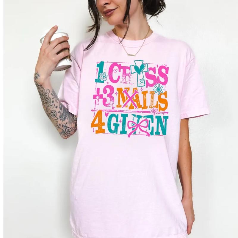 1 Cross 3 Nails 4 Given Christian Easter Shirt, Jesus Easter Cross Bible Verse Tee, Coquette Happy Easter Religious Tshirt, Unisex Short Sleeve Tee, Casual Clothing