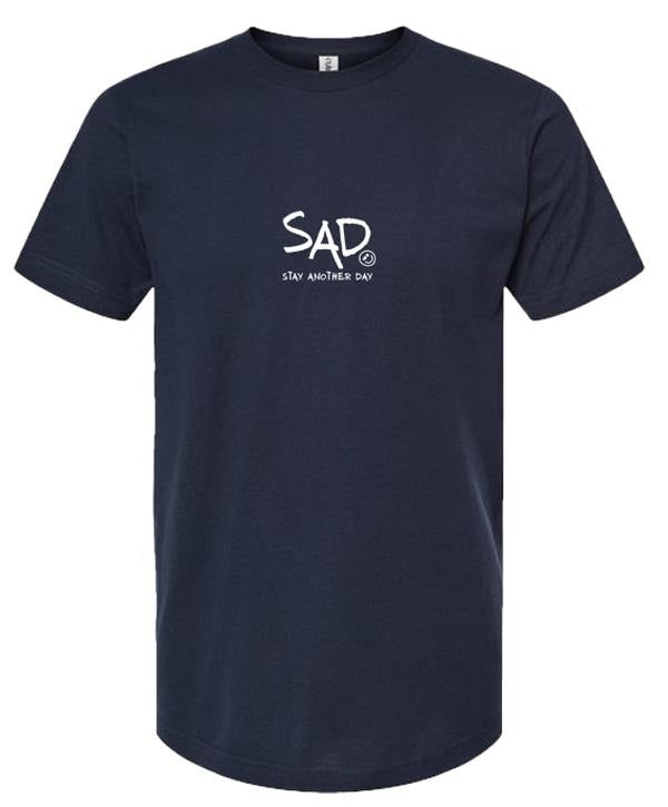 100 Piece Bulk Order - Stay Another Day OG Navy T-Shirt Men's Cotton Crewneck Tee with Mental Health Graphic & Logo Front Casual Streetwear Top Navy Blue