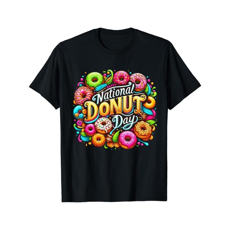 1pc National Donut Day T-Shirt - 100% Cotton Casual Round Neck Tee, High Stretch Fabric, Printed Design for Donut Lovers, Unisex for All Seasons made in usa