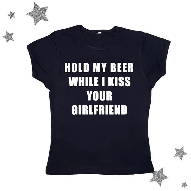 Aesthetic Cute Baby Tee, Vintage Women's Letter Print, Casual Punk Streetwear, Grunge T-shirt, Y2k Clothes Gothic Emo Girl, Women Fitted T-Shirt, Y2k Top Women Streetwear Shirt