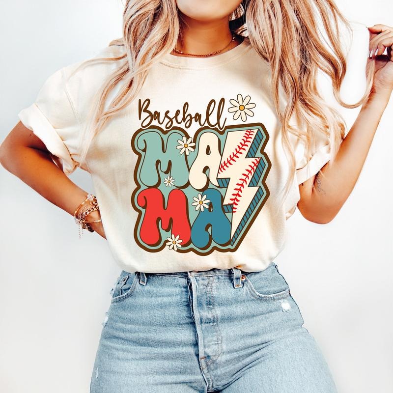 Baseball Mama T-Shirt, Baseball T-Shirt, Retro Baseball Mom T-Shirt, Design