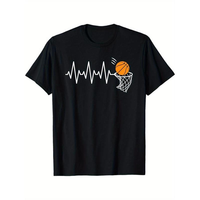 Basketball Printed, Men's Cotton T-shirt, Casual Short Sleeve Round Neck Tee, Soft Comfortable Basketball Players Top, Sports Lover T-Shirt made in usastyle{n002}3