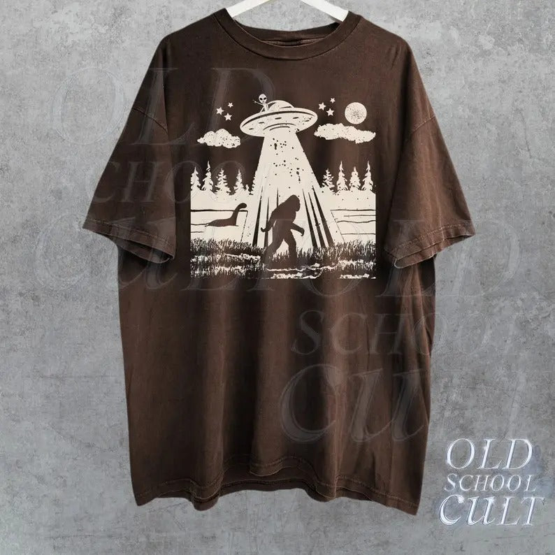 Bigfoot Ufo Retro 90s Shirt, Sasquatch Tee, Funny Bigfoot Tee, Hiking, Yeti, Monster, Alien, Cool Unisex Shirt