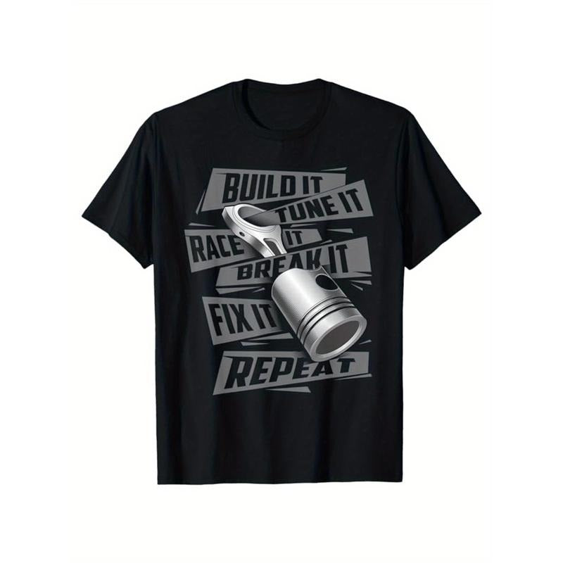 Car Enthusiast & Mechanic Print, Men's Cotton T-shirt, Graphic Tee Men's Xmas Outdoor Clothes, Men's Clothing, Casual Short Sleeve Crew Neck T-shirt, Tops For Men, Gift For Men made in usa