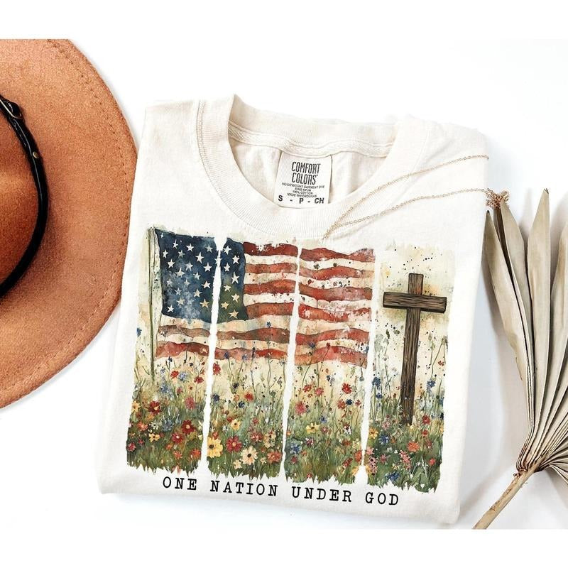Comfort color One Nation Under God T shirt, 4th of July Christian Patriotic Sublimation sweatshirt, Faith and Freedom Shirt, American Flag Cross