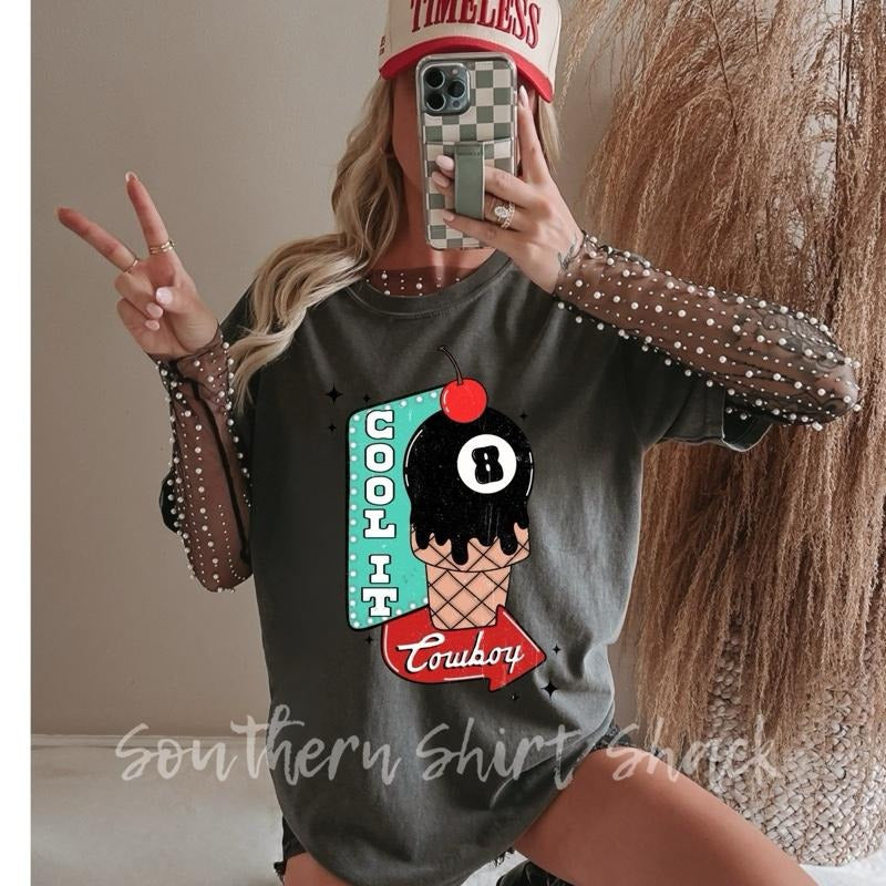 Cool it Cowboy retro ice cream 8 ball T shirt | Pepper comfort colors t shirt