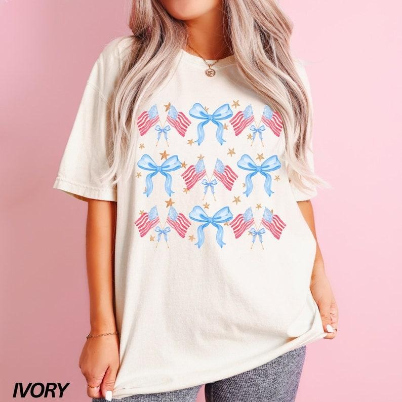 Coquette 4th of July Shirt, American Flag Shirt, USA Shirt, Retro 4th of July Shirt, Trendy Summer Shirt, Comfort Colors, Coquette Bow Tee