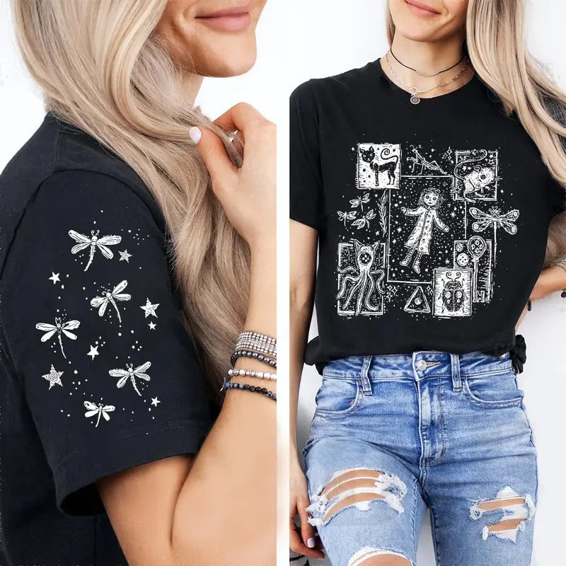 Coraline Dreaming with Dragon Fly Shirt, Horror Coraline movies, Horror Character Shirt, Halloween Crewneck Sweatshirt