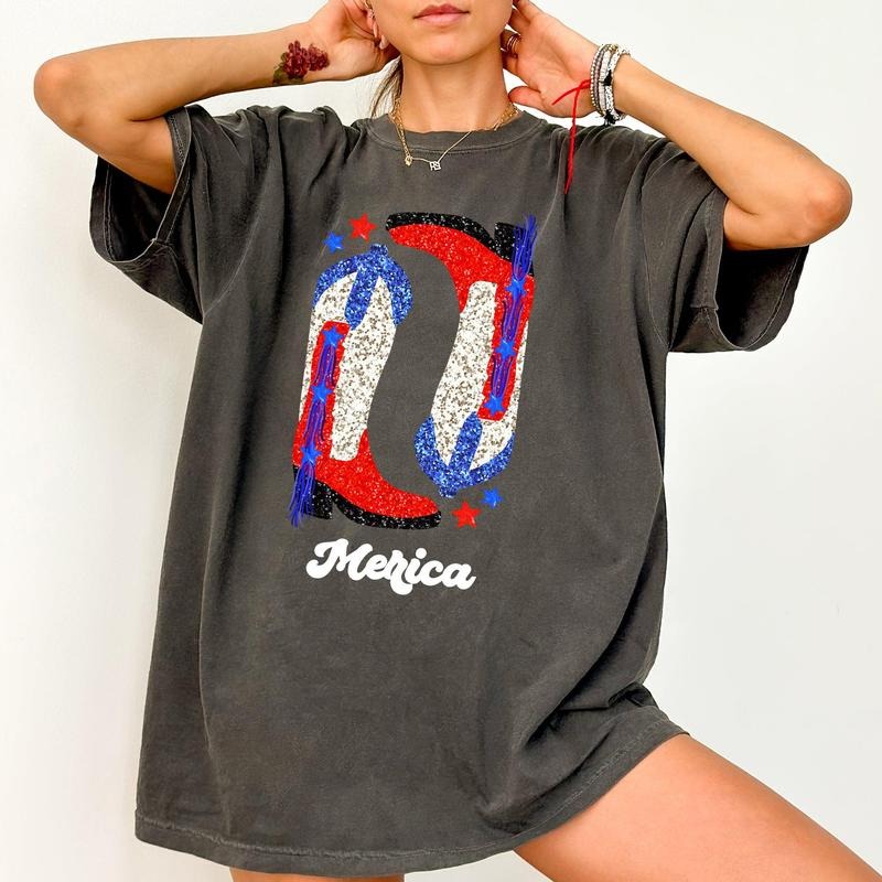 Cowgirl Boots, FauxGlitter, Western, Country, Cowboy, Tshirt, Women's Crew Neck, Crewneck