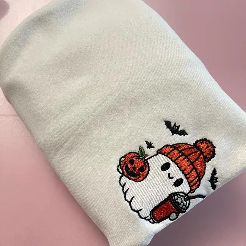 Cute pumpkin ghost embroidered sweatshirt, Halloween sweatshirt, womens sweatshirt