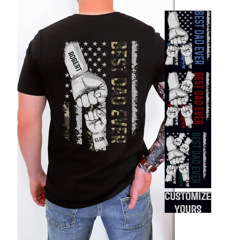 Dad Raised Fist Bump T-Shirt, Kid Names Gift For Daddy, Best Dad Ever Shirt, Dad Kids Matching Tshirt, Father's Day Gift