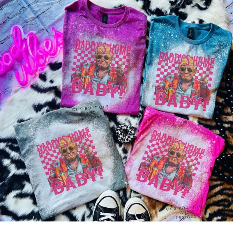 Daddy Is Home Baby Donald Trump T-Shirt Bleached - Gildan - Unisex