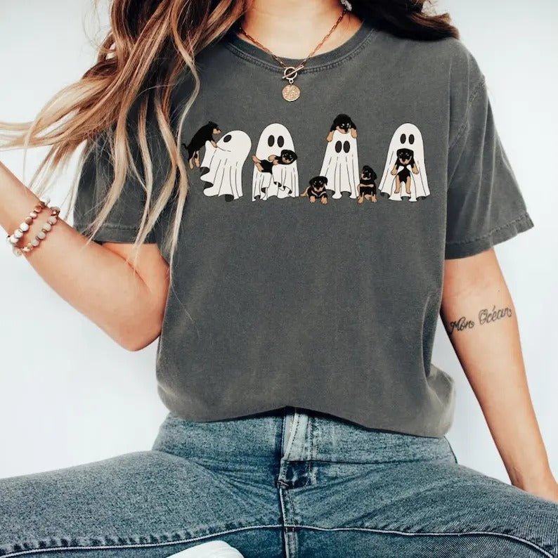 Dog Halloween Unisex Tshirt Dog Ghost Rottweiler Doberman Dog Gift Dog Lover Halloween Dog Halloween Shirt Cute Dog ghost Thsirt Dog Ghost