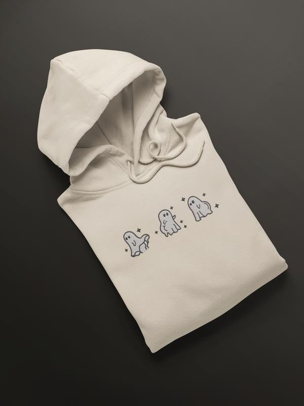 Embroidered Ghost Sweatshirt, Halloween Sweatshirt, Black Cat, Fall Sweatshirt for Women, Halloween Crewneck, Ghost Shirt, Spooky Season Comfort Hoodie, Everyday Comfy Womenswear, Cute Soft Cotton Fleece Sweaters heavyweight hoodie
