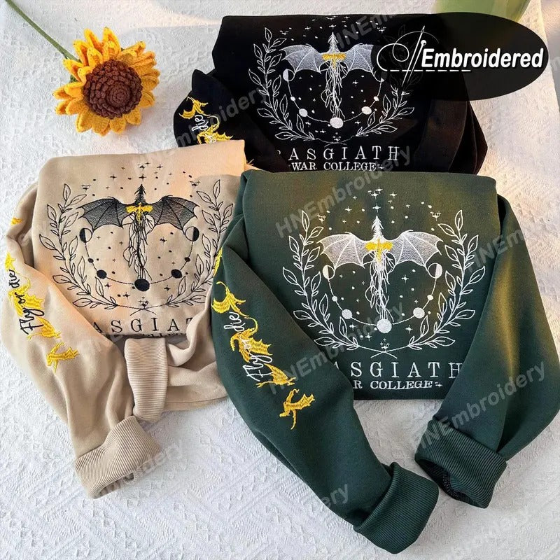 Fourth Wing Embroidered Sweatshirt, Basgiath War College, Embroidery Crewneck, Book Sweater, Fly or Die Bookworm Gift, Gift for Book Lover