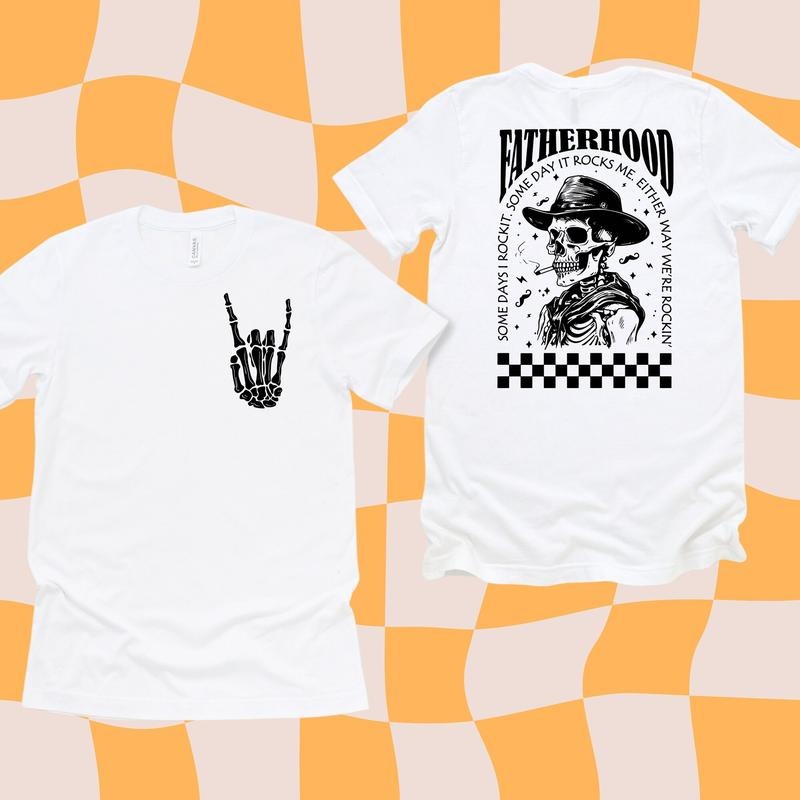 Funny Fatherhood Shirt, Trendy Back And Front Shirt, Skeleton Dad Shirt, Fathers Day Shirt, Sometimes I Rock It Sometimes It Rocks Me Shirt