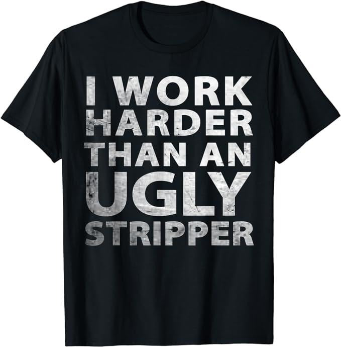 Funny Work Shirts, I Work Harder than an Ugly Stripper Funny Graphic T-Shirt Menswear Casual Cotton