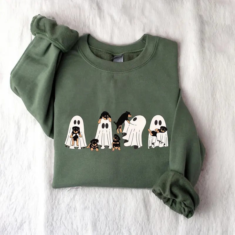 Halloween Ghost Shirt, Ghost Rottweiler Shirt, Dog Lover Gift, Womens Halloween Shirt, Dog Halloween Shirt,Spooky Season Tee, Fall Crewneck Womens Halloween Shirt