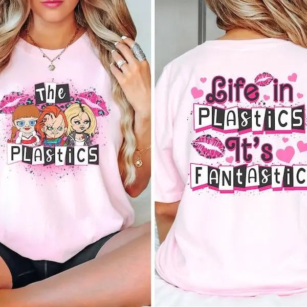 Horror doll tshirt, horror movie tshirt, funny Halloween graphic tee, pink spooky shirt, retro aesthetic, scary characters Valentines