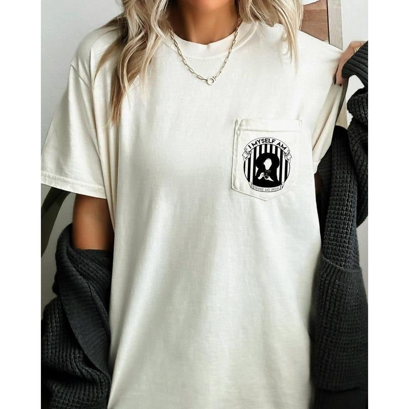 I Myself Am, Strange and Unusual, Halloween Pocket Tee, Women's, Comfort Colors Tee, Spooky, Tshirt, Witch, Pumpkin, Ghost, Skeleton