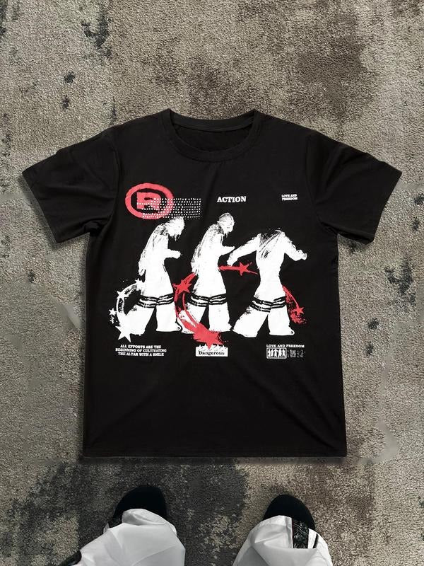 Men's Cartoon Graphic Print Round Neck Tee, Regular Fit Casual Short Sleeve T-shirt for Daily Wear, Men's Top for All Seasons, Tropical