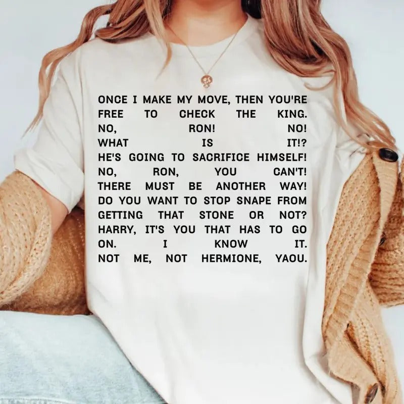 Once I Make My Move Potter Chess Scene Tshirt Not Me Not Hermoine Graphic Tee, You're Free to Check the King Shirt, Unisex Wizard T-Shirt, Wizard School, Wizardry, Book Lover, HP Books