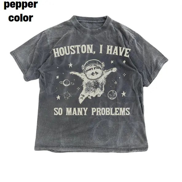Raccoon In Space Retro 90s Graphic T-Shirt, Funny Galaxy Graphic T-shirt, Problems Gag Moon 90s Shirt, Vintage Animal Gag Unisex Tee, Funny Shirt Menswear Top Underwear Man Tshirt Streetwear