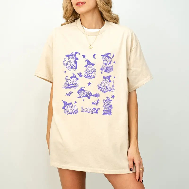 Retro Cat Halloween Shirt, 90s Cat Witch Vintage Tee, Funny Witch Cat T-Shirt, Halloween Cat Lovers Gift