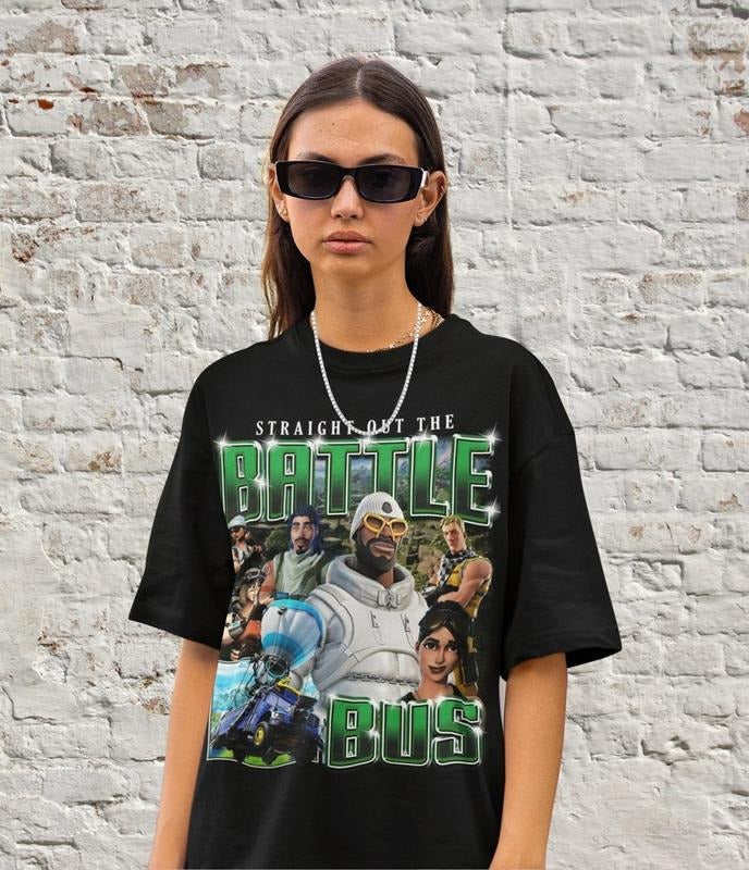 Retro Straight Out The Battle Bus, Fort Battle Royale F-nite Survival Program Gamer Gift Christmas Bootleg 90s Fans , Gaming T-Shirt Unisex