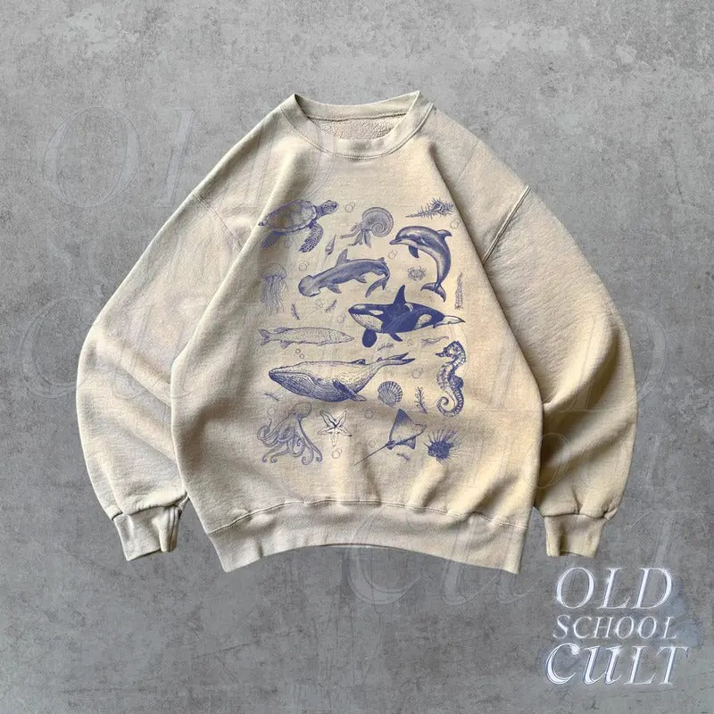 Sea Animals Ocean Vintage Sweatshirt, Retro Ocean Graphic Sweater, Whale, Orca, D.olp.h.in, Beach Hoodie, Ocean Lovers T-shirts, Crewnecks, Hoodies – Gifts Suitable for Anyone