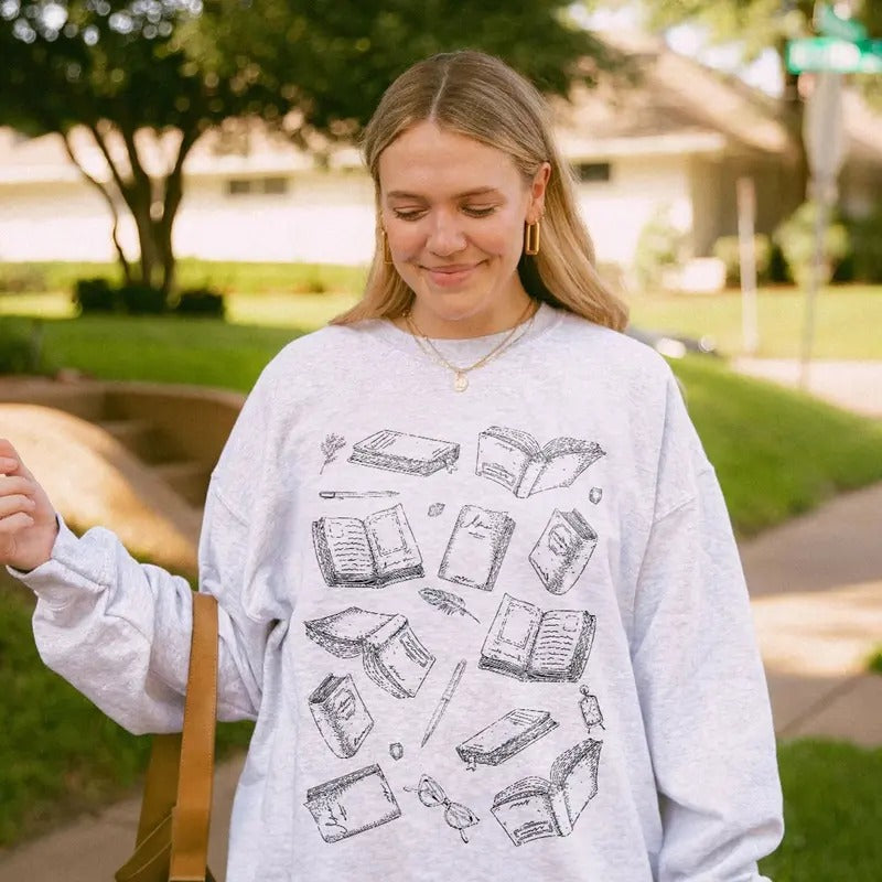 Simple Bookish Sweatshirt, Minimal Book Lover Shirt, Light Dark Academia Gift Reading Lover Gift, Sweatshirt for Reader, Gift for Bookworm 0ET2T