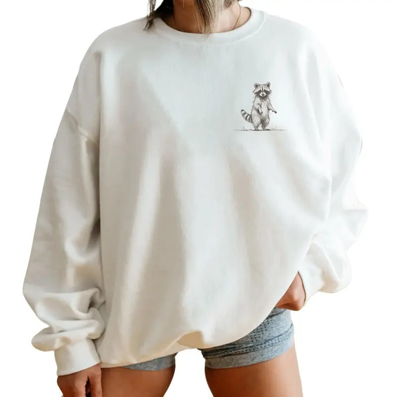 Standing Raccoon Unisex Sweatshirt, Cute animal T-shirt, Retro Cartoon Tee, Sketch Raccoons Sweater Clothing Comfort Cotton Crewneck Fashion