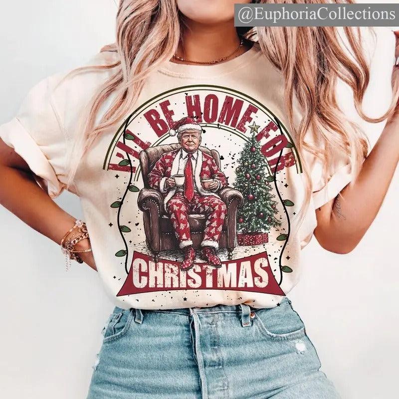 #Trump I'll Be Home for Christmas - Funny Cute #Trump Christmas T-Shirt , Global Trending Outfits