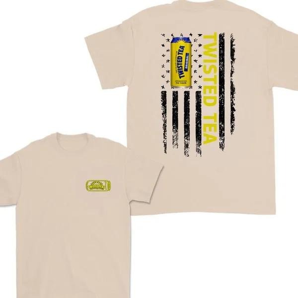 Two-sided Twisted Tea American Flag T-shirt, Funny Summer Graphic Tee, Trendy Outdoors Beer Lover Sweatshirt, Unisex Hoodie, Independence Day