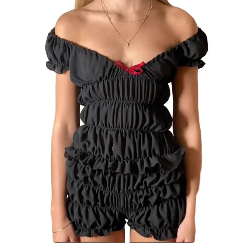 Women's Summer 2 Piece Outfits Short Sleeve Ruched Tops Solid Color/Plaid Shorts Set Womenswear Check