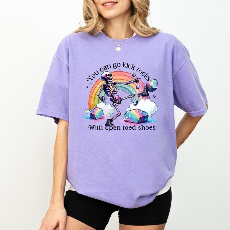 You Can Kick Rocks with Open Toed Shoes Shirt, Funny Snarky Skeleton Printed Tee, Kick Rocks Shirt, Sarcastic Tee, Adult Humor T-Shirt, Comfy Fabric T-shirt, Women's Top, Streetwear, Cotton Fabric Relaxed Fit Chic Style